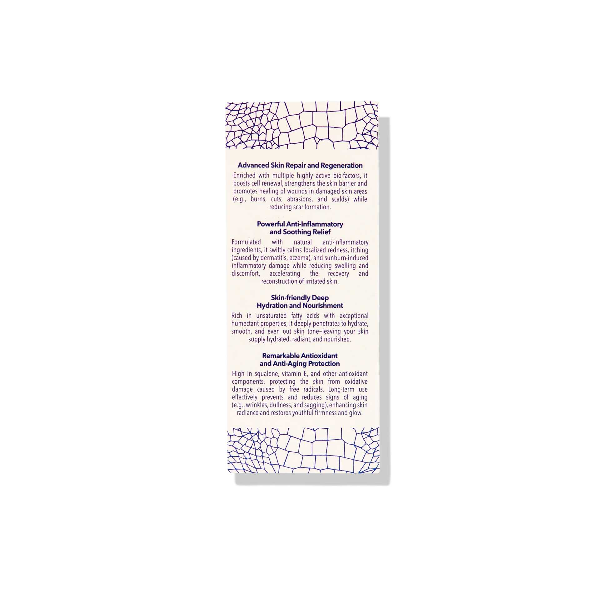 It helps with dry patches, redness, scars, and minor irritation. Avoid contact with eyes.